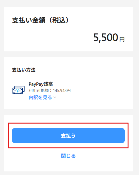 「支払う」をクリックします。