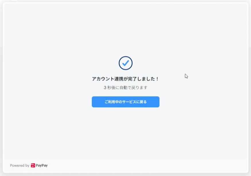 アカウント連携完了後、「ご利用中のサービスに戻る」をクリックします。