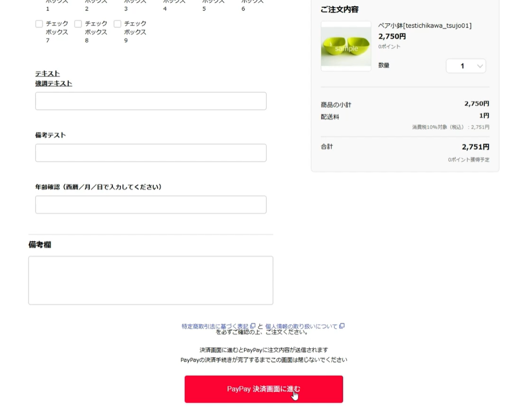 makeshopの決済画面に戻り、「PayPay決済画面に進む」をクリックします。