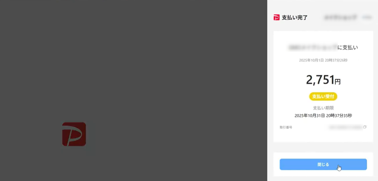 支払い完了画面が表示されます。